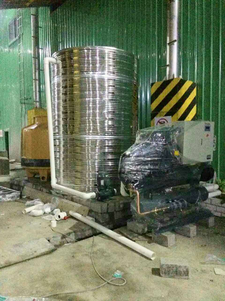 經(jīng)過供需雙方不斷的計算對比,最終確定選用水冷螺桿式冷水機(jī)3臺,并配套冷卻水塔、不銹鋼保溫水箱、循環(huán)水泵等輔助設(shè)備。